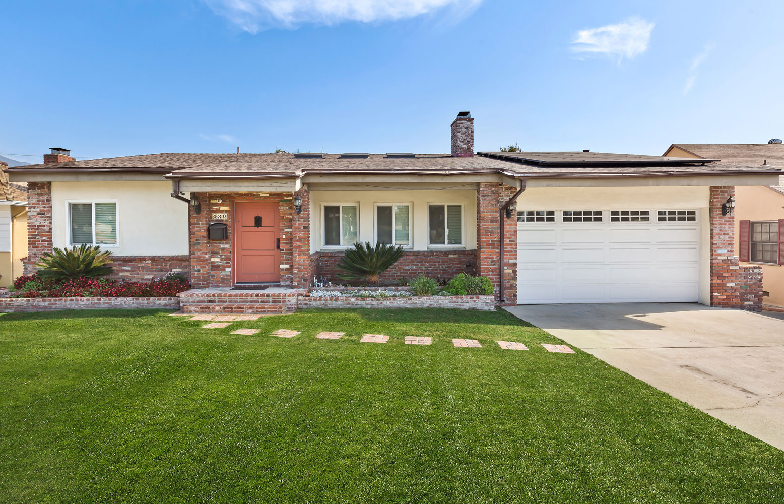 Beautifully remodeled and spacious one-story home on a large 9,100+ SF lot. This light and bright home invites you with travetine floors followed by a grand living room featuring 13-feet high ceilings, 3 skylights with remote shades, and a stately fireplace. Gorgeous wood floors throughout the house. Open to the the spacious dining room features a fully remodeled chef's kitchen which includes an Italian stainless Verona range, wine fridge, stainless dishwasher, and Quartz countertops. Completely remodeled master bathroom with a Japanese soaking tub and steam shower. This eco-friendly home also features a solar panel system installed and paid for in 2016 to reduce or even elimiate your eletric bills! New garage floor, new sprinkler system in the backyard, smart thermostat, smart front door light, and a bonus finished basement that is not included in the square footage. Excellent floor plan. Professionally designed large backyard is lush and very private. Come make this grand home yours and enjoy the Rose Parade in the front yard every new year!